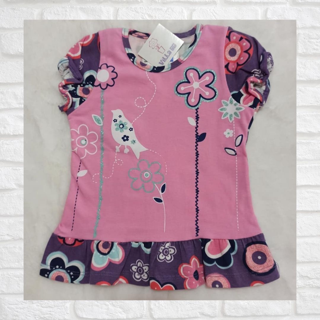 DESCRIÇÃO: blusa em cotton - silk com passarinhos, flores e detalhes em brilhinhos prata - babadinho na barra - manguinhas com franzido - cor rosa com detalhes lilás - uma graça!!!