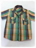 DESCRIÇÃO: camisa manga curta - tricoline xadrez - azul com verde e laranja - fechamento com botões - tem 2 bolsinhos frontais com lapela.