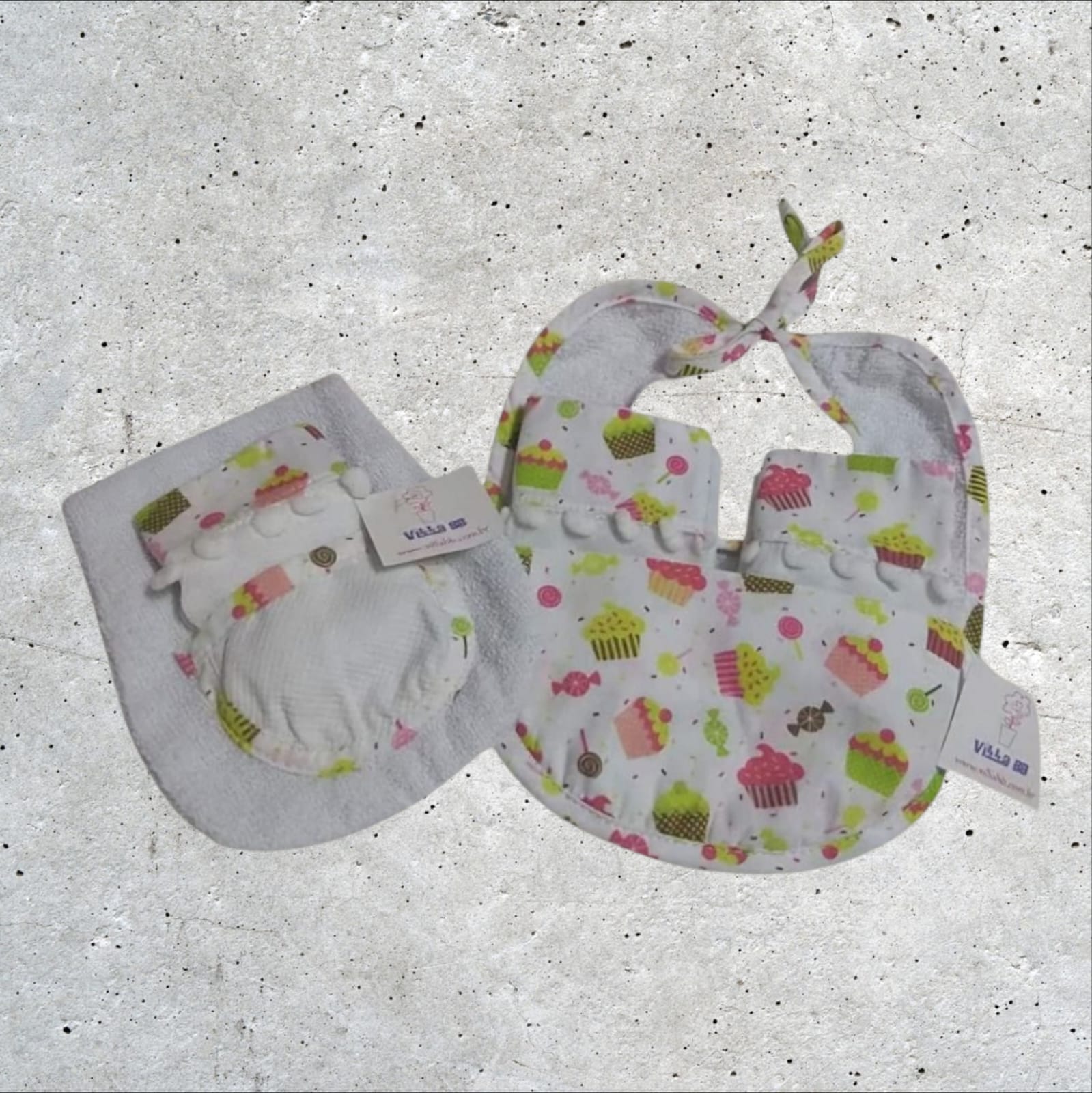 🛒 Ação: Garanta agora o seu kit de enxoval de bebê com babador para bebê e toalhinhas de boca exclusivas na VILLA BB! Toque de amor e cuidado que seu bebê merece.