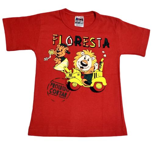 DESCRIÇÃO: Camiseta em meia malha - manga curta - estampa Leão na Floresta